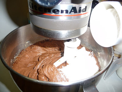 Dough is complete. I took this picture to show you how wet this dough is. It's about the consistency of frosting when it's done. It NEEDS to be well chilled or you'll end up with chocolate pancakes after baking. Don't attempt to use it in the form.